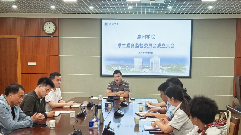 为严格落实食品安全“四个最严”要求,进一步加强校园食品安全管理,发挥学生在校园膳食管理中的监督作用,2025年10月21日晚,惠州学院首届学生膳食监督委员会成立大会在行政楼501会议室举行。